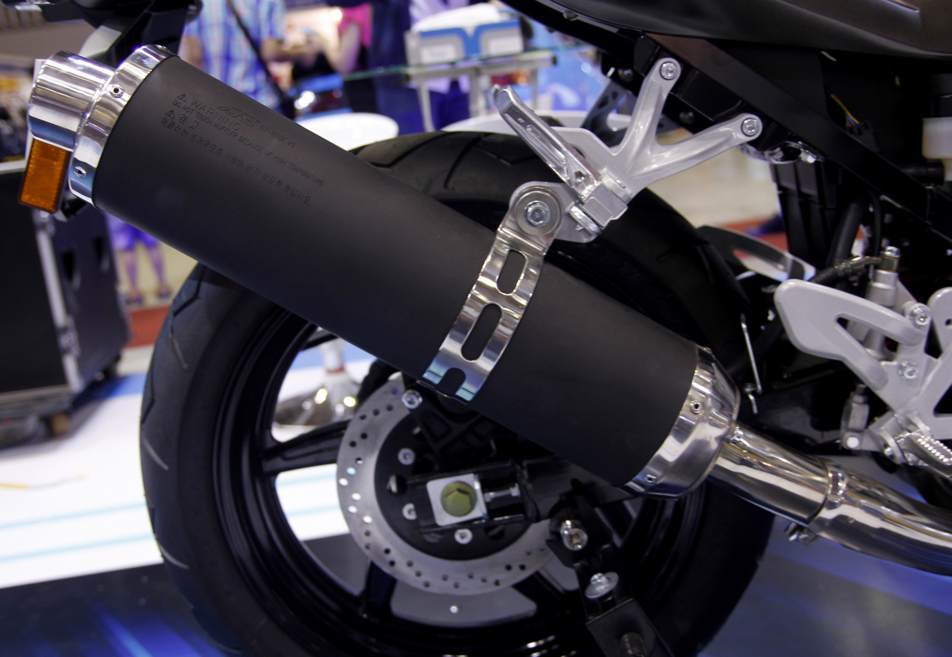 | Ống xả bằng thép sơn tĩnh điện khá lớn được đặt một bên. |