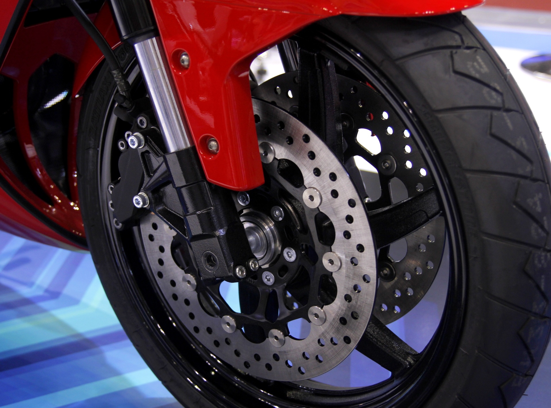 Phía trước được lắp đĩa đôi đường kính 300 mm, kẹp phanh 4 piston để tăng cường lực hãm. Phía sau sử dụng đĩa đơn đường kính 230 mm, 2 piston.