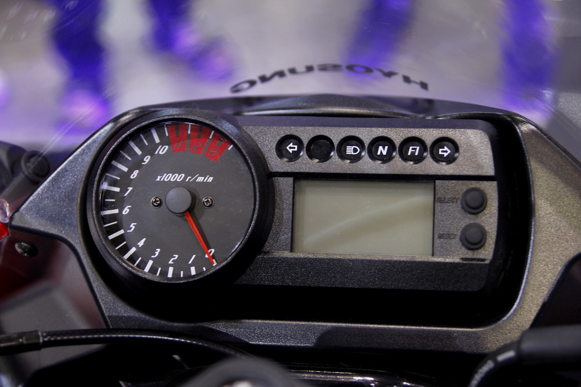 | Bảng đồng hồ đơn giản nhưng rõ ràng, bên trái là đồng hồ báo vòng tua máy, giới hạn 13.000 vòng/phút. Bên phải là màn hình LCD hiển thị các thông số về tốc độ, lượng xăng... |