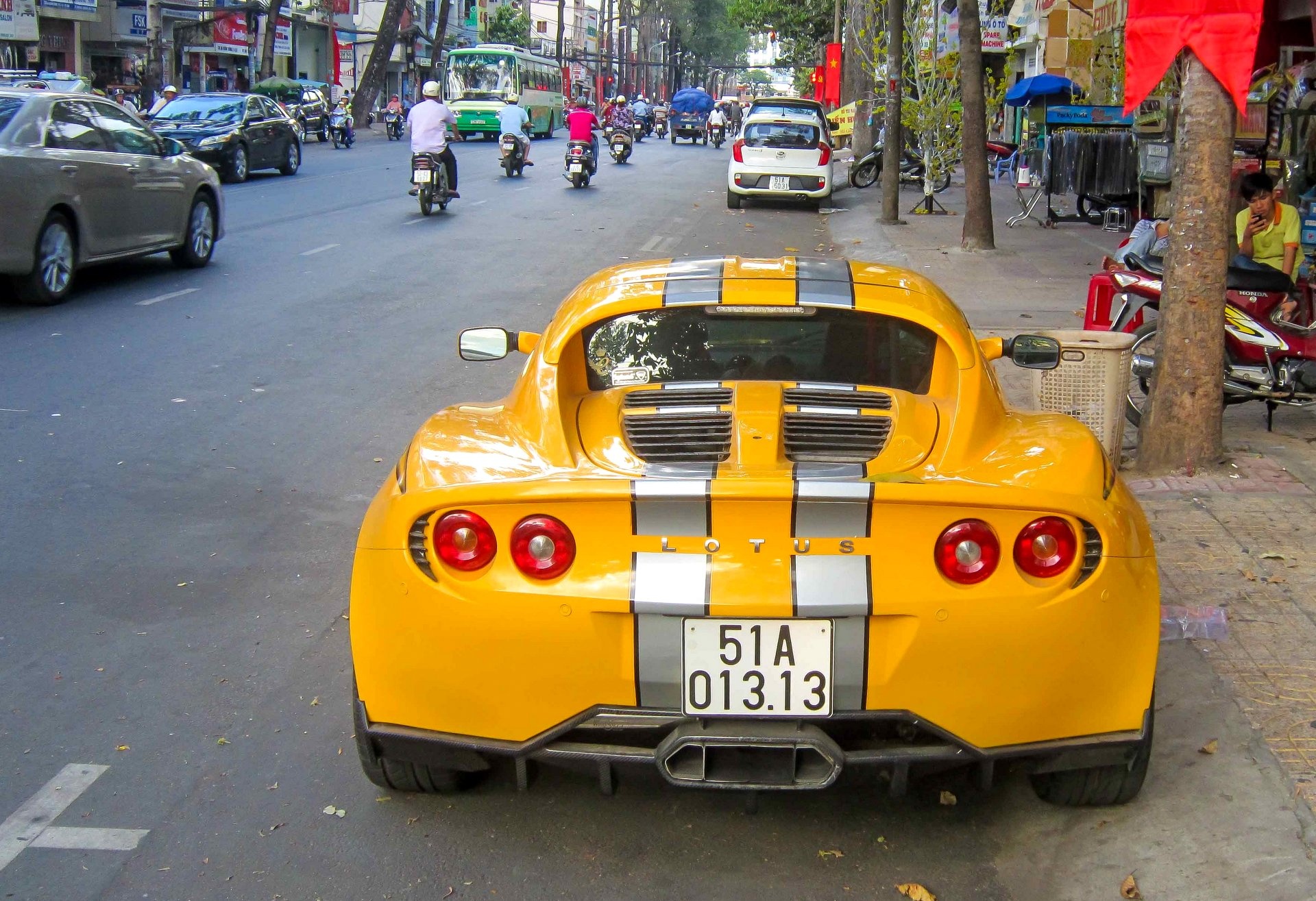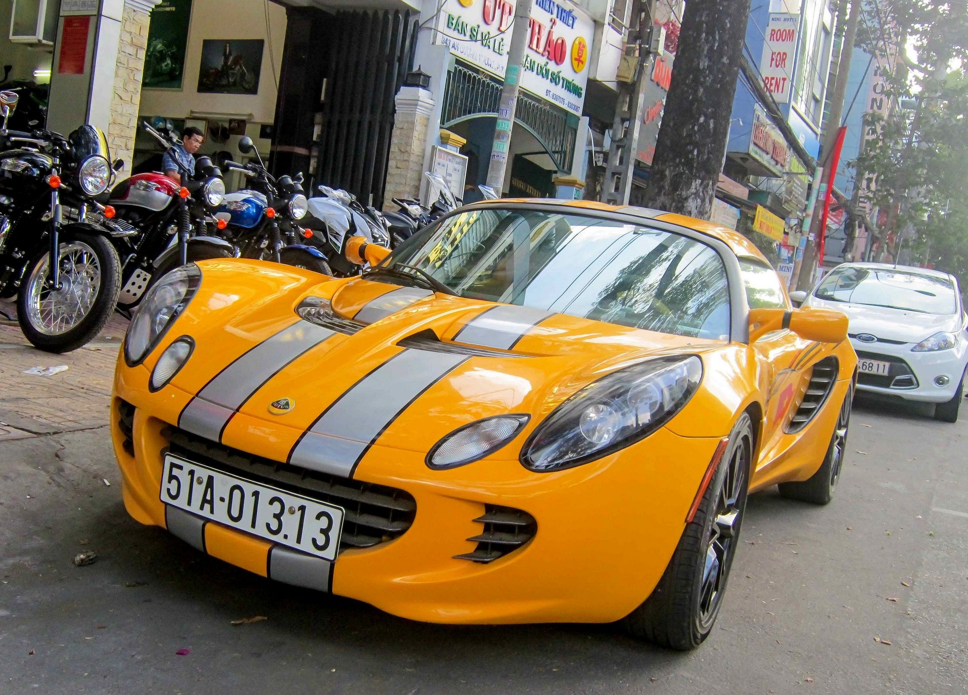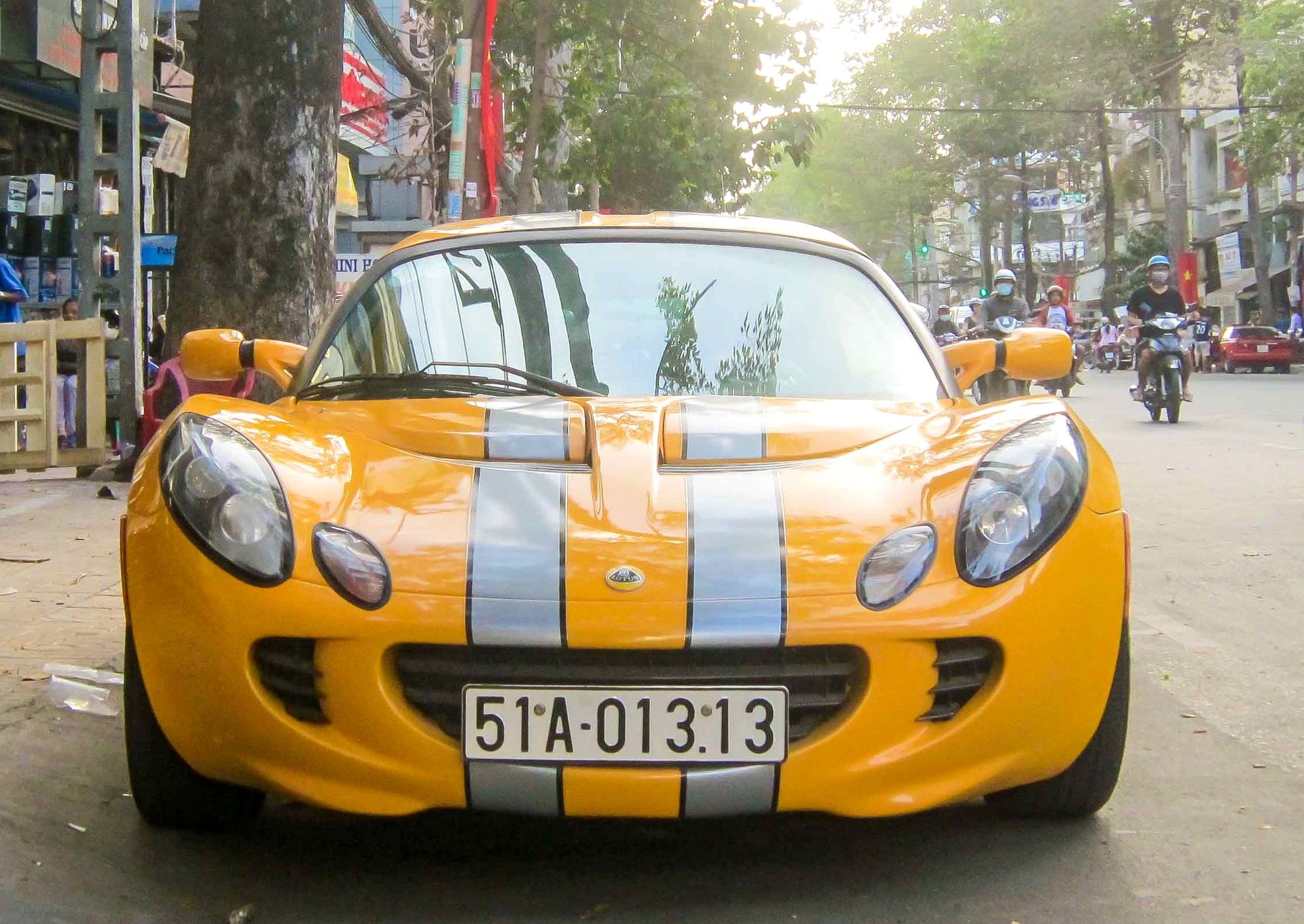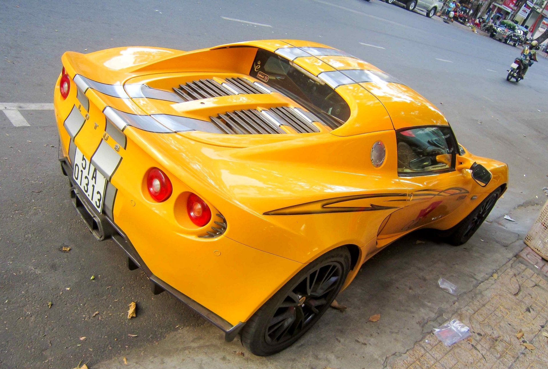 Chiếc xe thể thao Lotus Elise S2 mang biển số 1313, thường đậu ở tuyến đường trung tâm TP HCM.