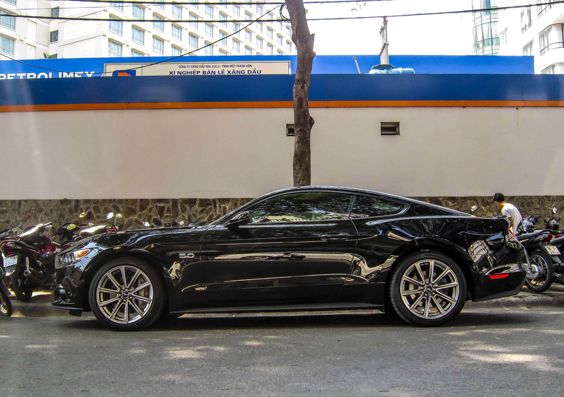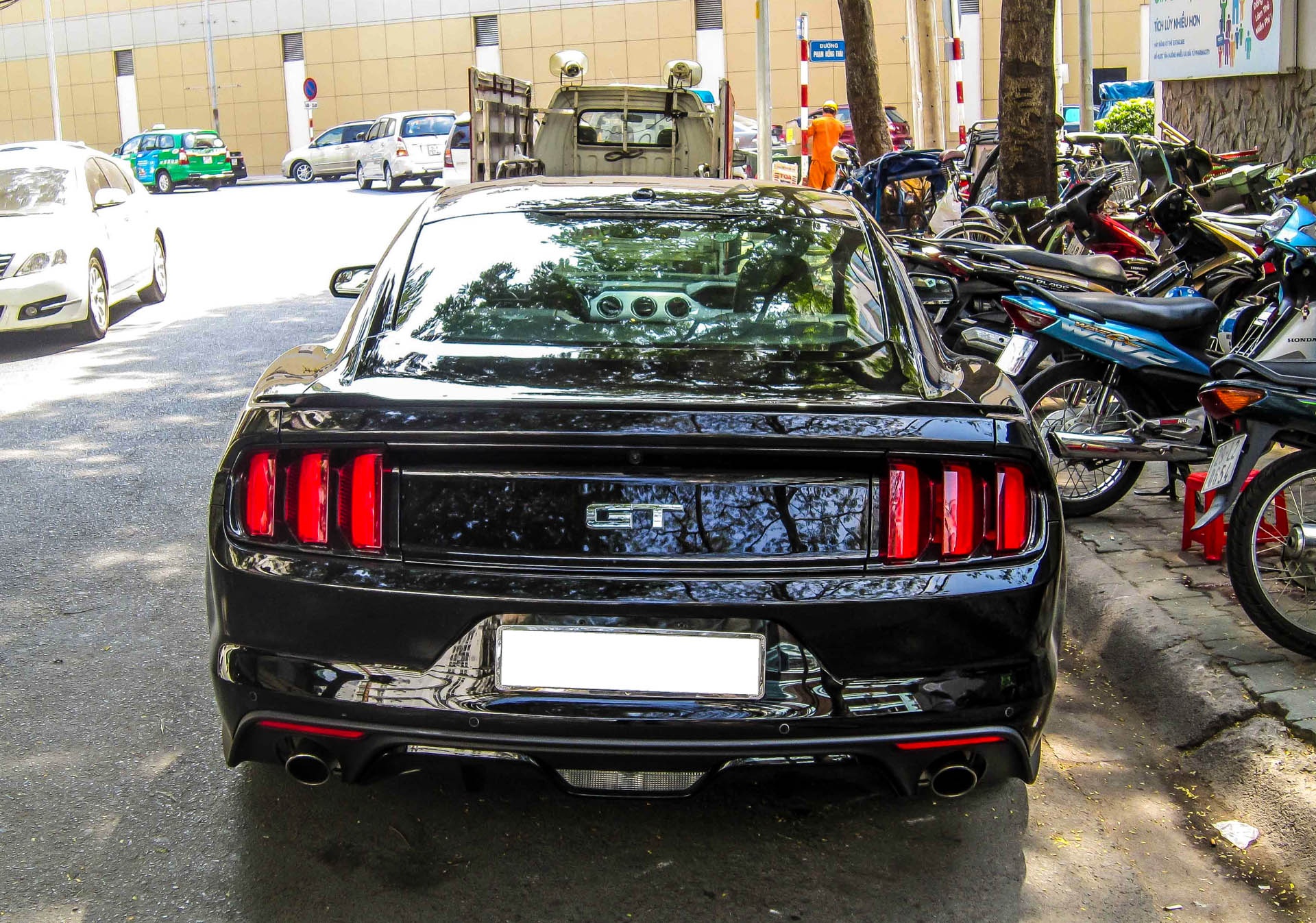 | Phiên bản Mustang GT mới được nhập về 2 chiếc. Chiếc xe này sử dụng động cơ V8, 5.0 lít, công suất tối đa 435 mã lực tại 6.500 vòng/phút và mô-men xoắn cực đại 400 Nm tại 4.250 vòng/phút, trong khi phiên bản EcoBoost chỉ mạnh 310 mã lực. |