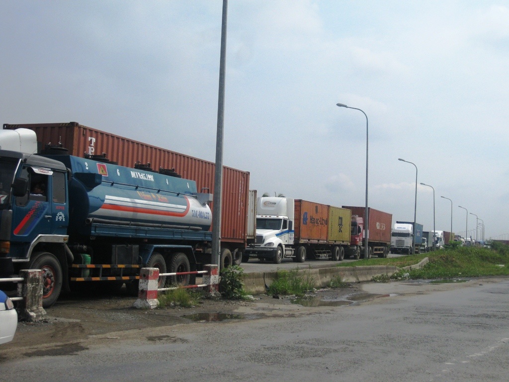 | Hàng trăm xe đầu kéo, xe tải, ô tô kẹt cứng nhiều giờ trên đường dẫn cầu Phú Mỹ. |