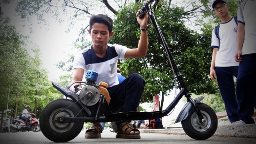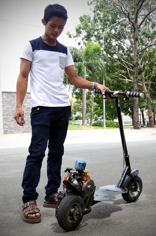 Chiếc xe có hình dạng giống một chiếc mini scooter do Bùi Như Nỉ, sinh viên ĐH Sư phạm Kĩ thuật TP.HCM chế tạo và có thể đạt vận tốc 40 km/h.