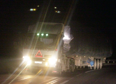 | Một xe gỗ khác đi từ Cửa khẩu La Lay qua QL 15D về QL 9, cũng có chiều dài, chiều rộng kỷ lục. |