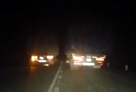 | Tổ TTKS đang làm nhiệm vụ ngay trước cửa Trạm TTKS QL 9 của Phòng CSGT Quảng Trị phớt lờ cho đoàn "xe vua" đi qua. |