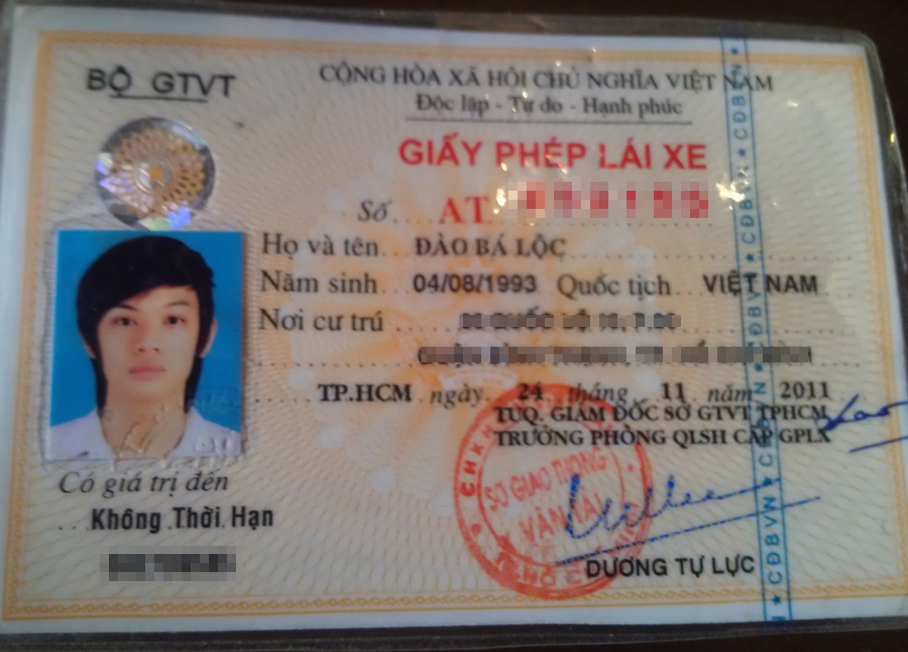 Ảnh giấy phép lái xe của Đào Bá Lộc được làm năm 2011, khi anh có một thời gian dài sống và học tại TP.HCM nên hình ảnh của anh bớt "quê" hơn.