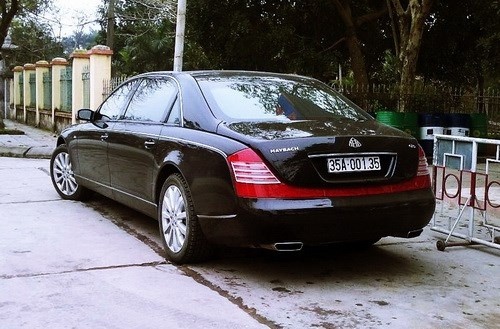 Chiếc Mayback 62S (bên phải) được cho là phương tiên đi lại của bầu Thụy