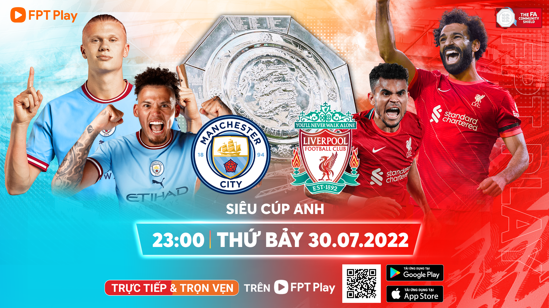 Khán giả hâm mộ bóng đá tại Việt Nam có thể theo dõi trực tiếp cuộc đối đầu đỉnh cao giữa Manchester City và Liverpool trên các nền tảng của FPT Play. Ngay sau khi đăng ký tài khoản và sở hữu một trong những gói dịch vụ MAX/VIP/SPORT, khán giả có thể thoải mái theo dõi trận Community Shield 2022. Thông tin chi tiết liên hệ hotline 19006600.
