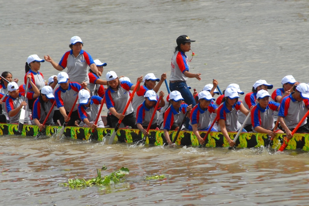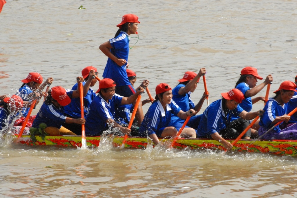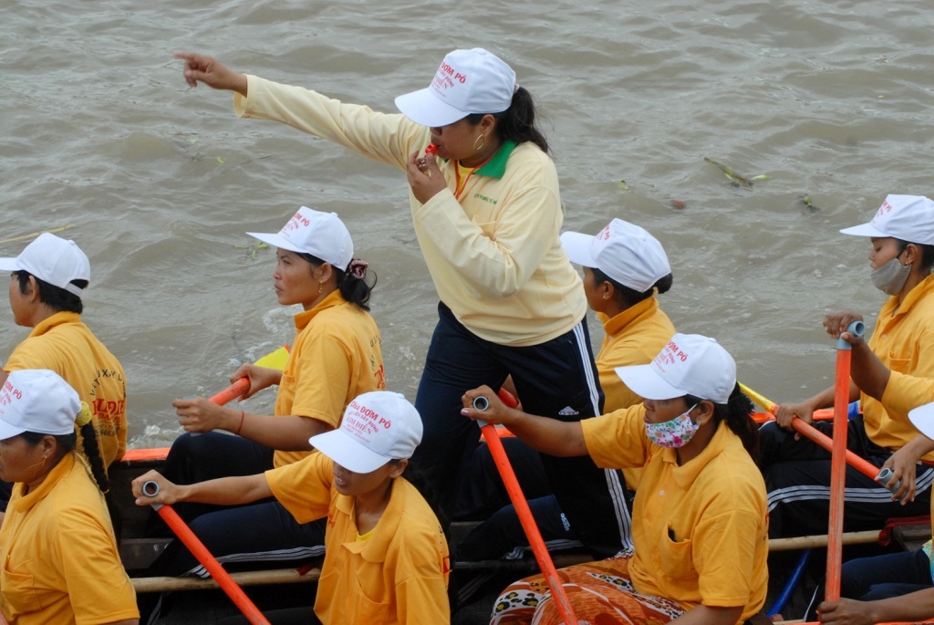Hàng trăm tay đua nữ trên những chiếc ghe ngo tranh tài hào hứng, mạnh mẽ trong Festival Đua ghe ngo của đồng bào Khmer vùng đồng bằng sông Cửu Long.