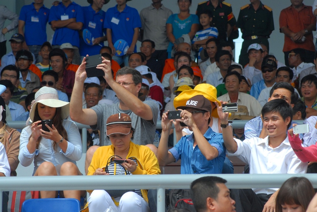 | Khách nước ngoài cũng đến xem lễ hội đua ghe ngo ở Sóc Trăng. |