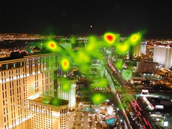 Khi nhìn dải Vegas, người xem nhìn thẳng, sau đó đánh mắt sang bên trái. |