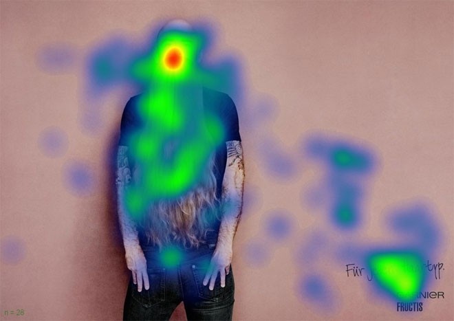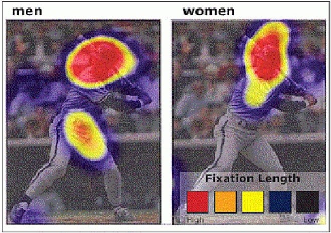 Người xem là nam tập trung vào nhiều phần trên cơ thể vận động viên bóng chày hơn (trái), trong khi người xem là nữ chỉ tập trung vào khuôn mặt (phải). |