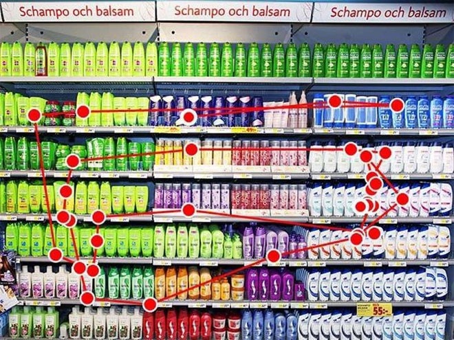 Hãy đặt sản phẩm chếch một chút về phía bên trái của khu vực trung tâm trong một cửa hàng nếu muốn thu hút sự chú ý cho sản phẩm đó. |