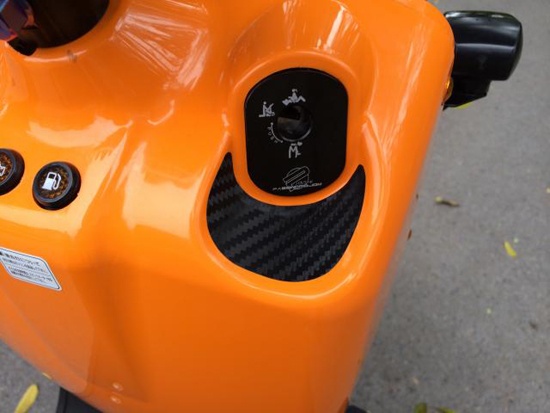 | Ốp chỗ để chân và bình xăng bằng carbon khô. |