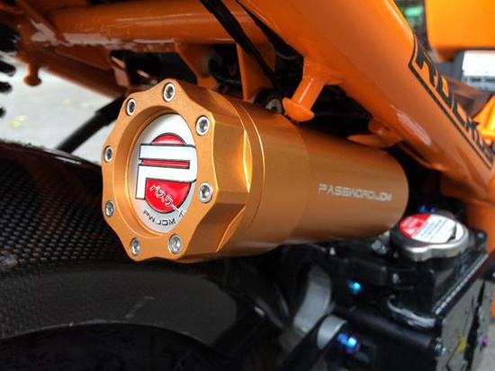 Không tiết lộ chi phí nhưng những món đồ hàng hiệu được gắn trên chiếc Honda Zoomer khiến nhiều dân chơi xe thích thú.
