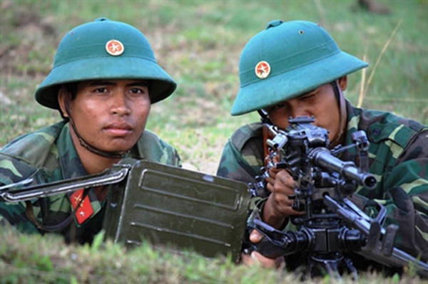 | Các chiến sĩ luyện tập bắn súng trung liên RPĐ. |