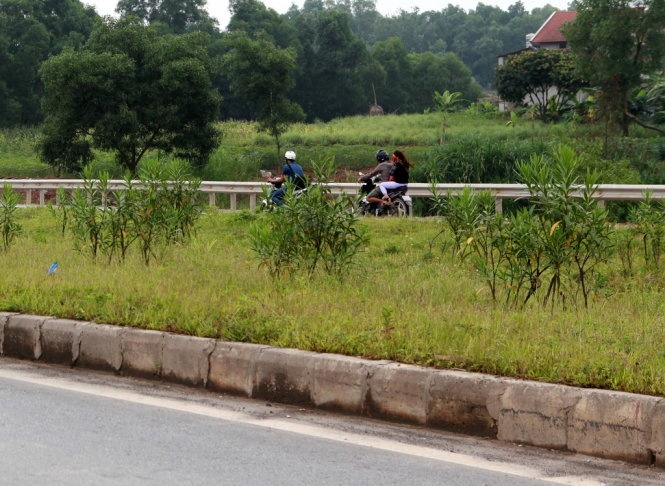 | Quốc lộ 3 mới Hà Nội - Thái Nguyên được thiết kế và khai thác theo tiêu chuẩn đường cao tốc nhưng xe máy vẫn đi vào dù có biển cấm. |