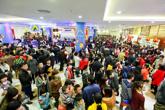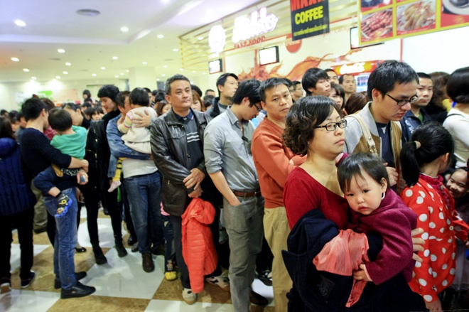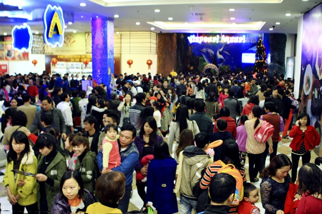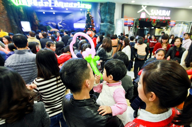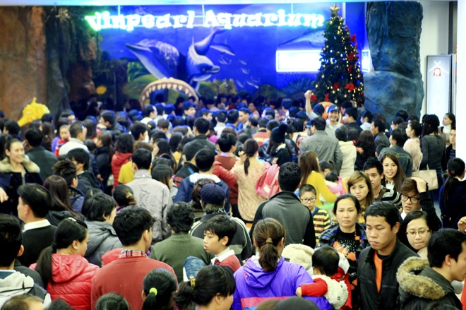 | Chiều 1 Tết dương lịch 2014, khu thủy cung mới khai trương ở khu đô thị Times City đông nghẹt người. |