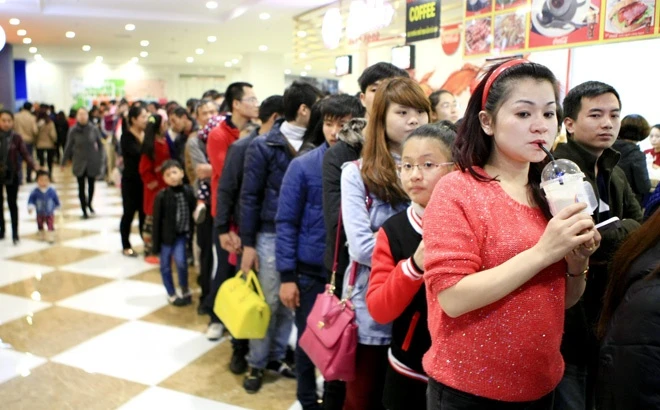 | Có nhiều người xếp hàng cả tiếng đồng hồ mới có thể vào được bên trong. |