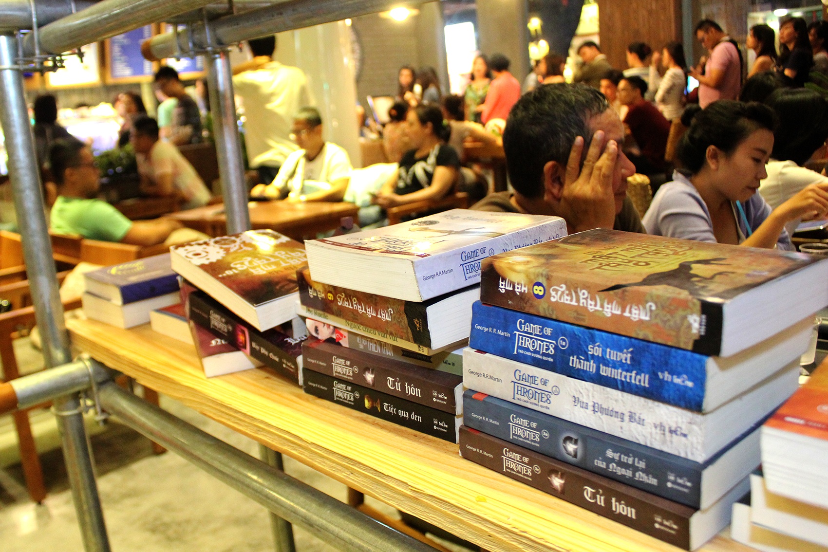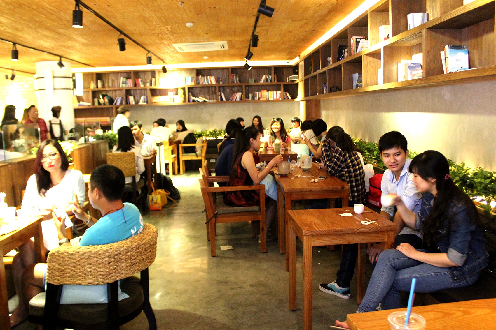 | Điểm đặc biệt là có những kệ sách với nhiều tiểu thuyết nổi tiếng. Khách hàng có thể đọc trong lúc thưởng thức cà phê. |
