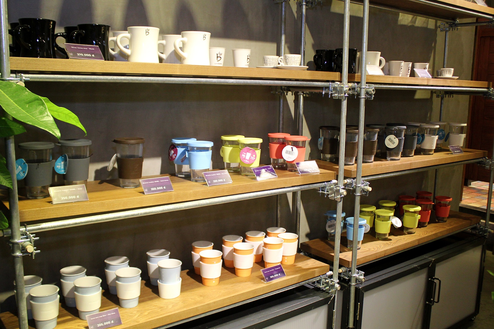 Cũng như nhiều thương hiệu cà phê quen thuộc với khách hàng Việt Nam, quán cà phê đến từ xứ kim chi cũng bày bán rất nhiều loại ly, tách, đồ lưu niệm.