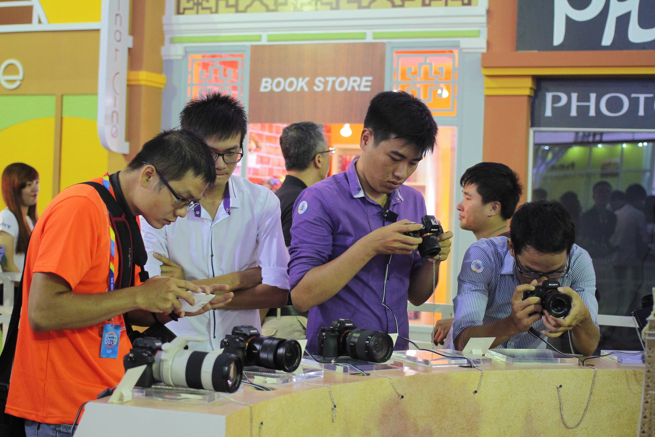 | Gian hàng Alpha máy ảnh cùng ống kính mới nhất của Sony. |