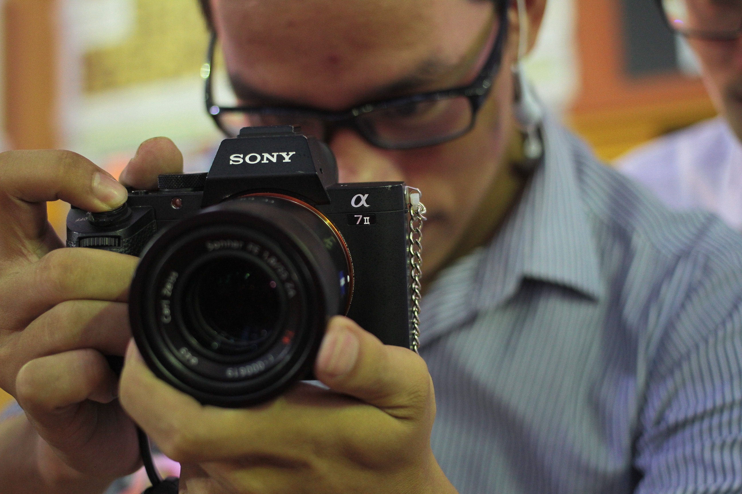 | Vị khách này đang trải nghiệm mẫu α7 II. Đây là chiếc mirrorless tốt nhất hiện nay của Sony.