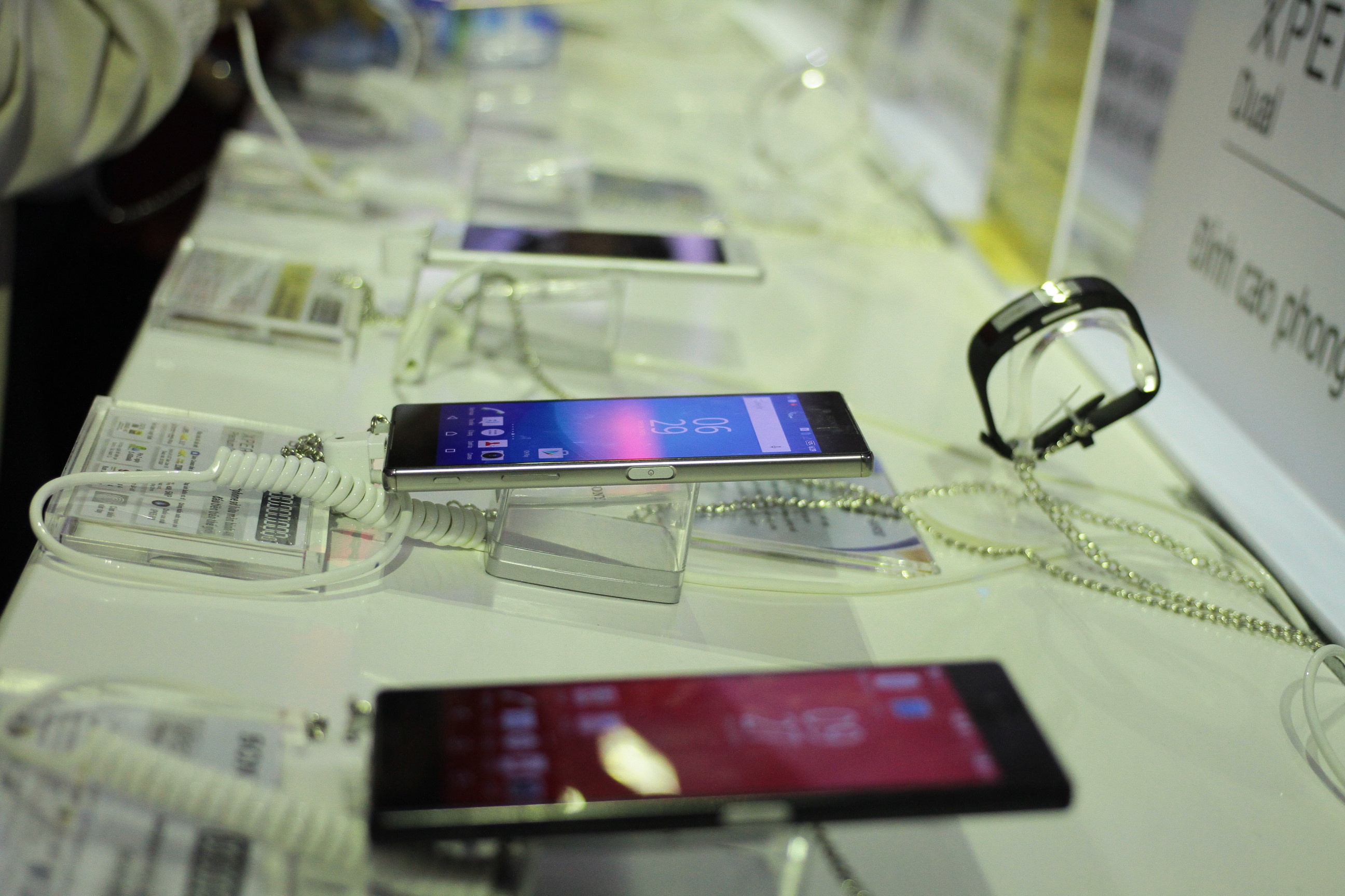 | Gian hàng trưng bày những smartphone cao cấp dòng Xperia thu hút đông đảo khách tham quan. |