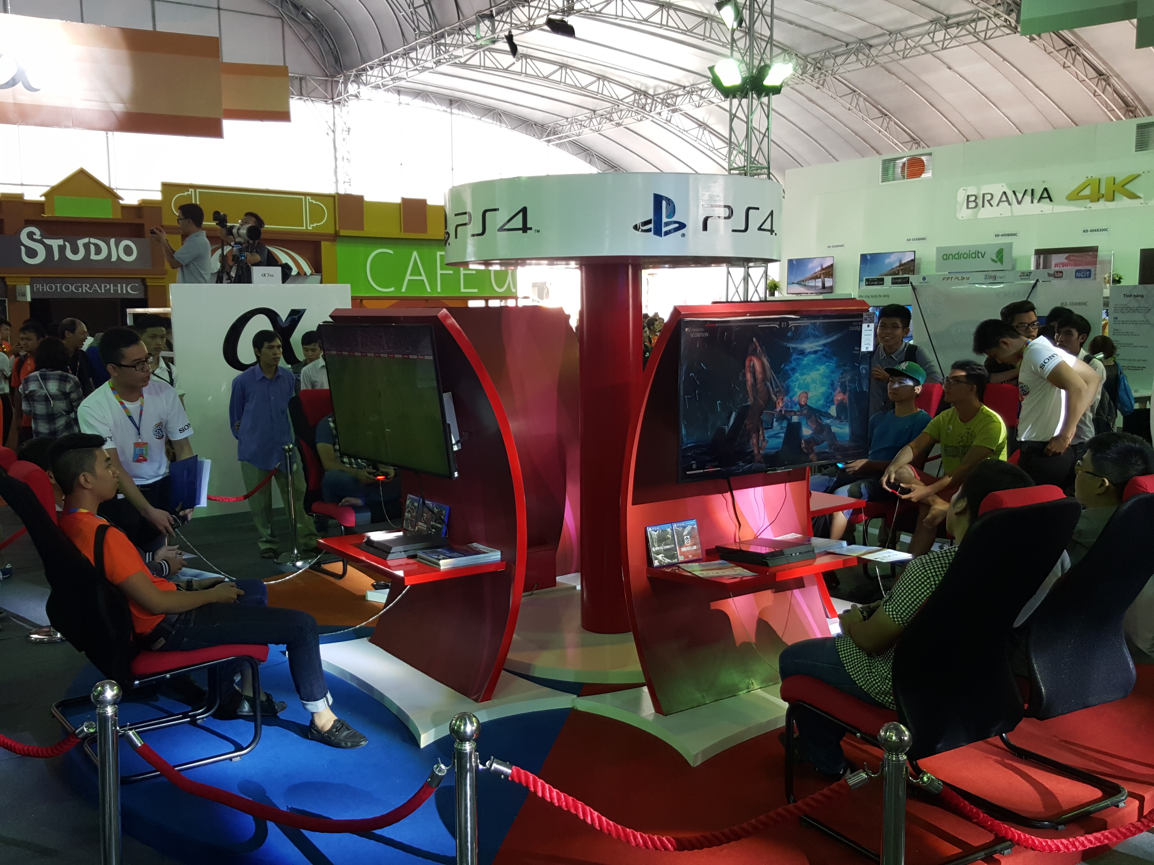 | Nơi trải nghiệm PlayStation 4 được nhiều khách tham quan nam quan tâm. |