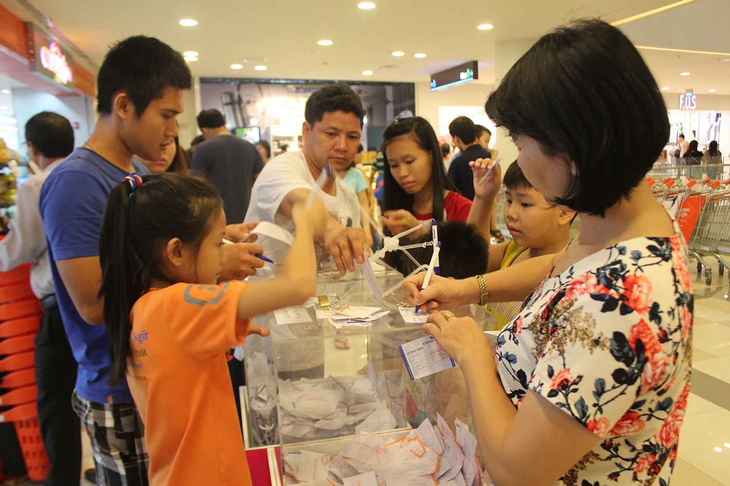 | Chen nhau bỏ phiếu tham gia chương trình rút thăm trúng thưởng. Ảnh: Zen Nguyễn. |