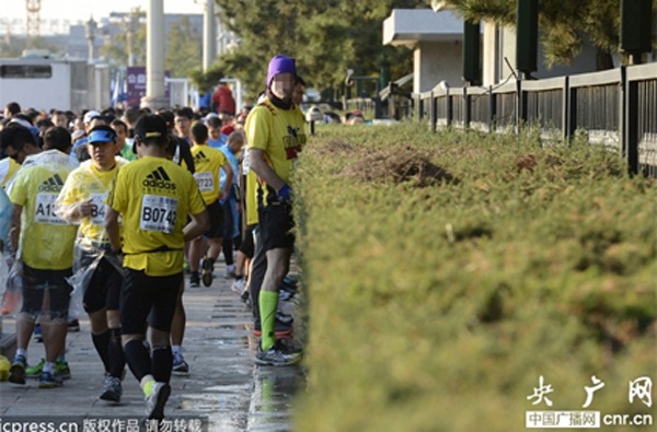 Khoảng 30.000 người đã có mặt tại cuộc thi chạy marathon quốc tế Bắc Kinh vào hôm 20/10. Các bức ảnh cho thấy nhiều vận động viên đã không ngần ngại "giải quyết nỗi buồn" ngay trong lúc thi chạy.