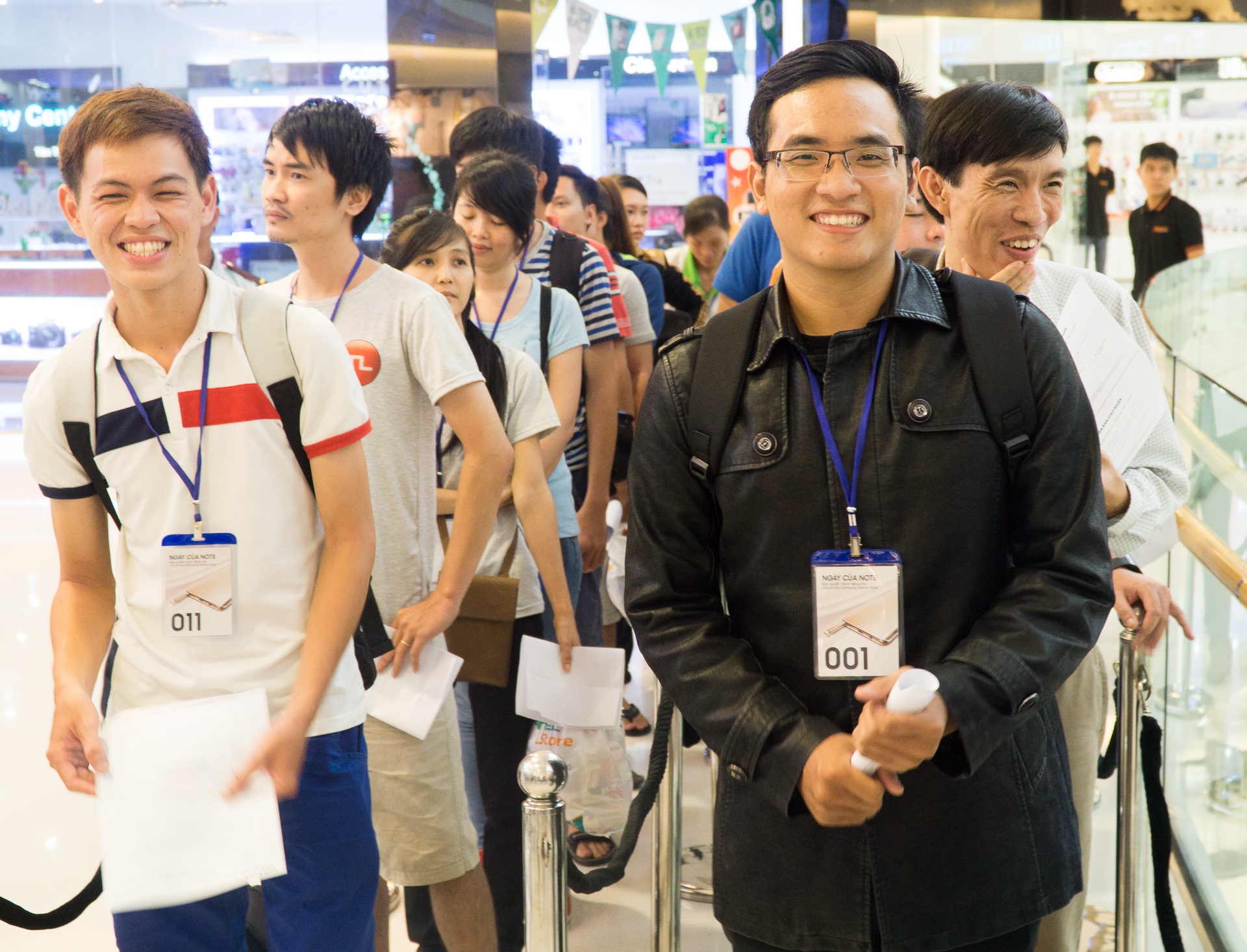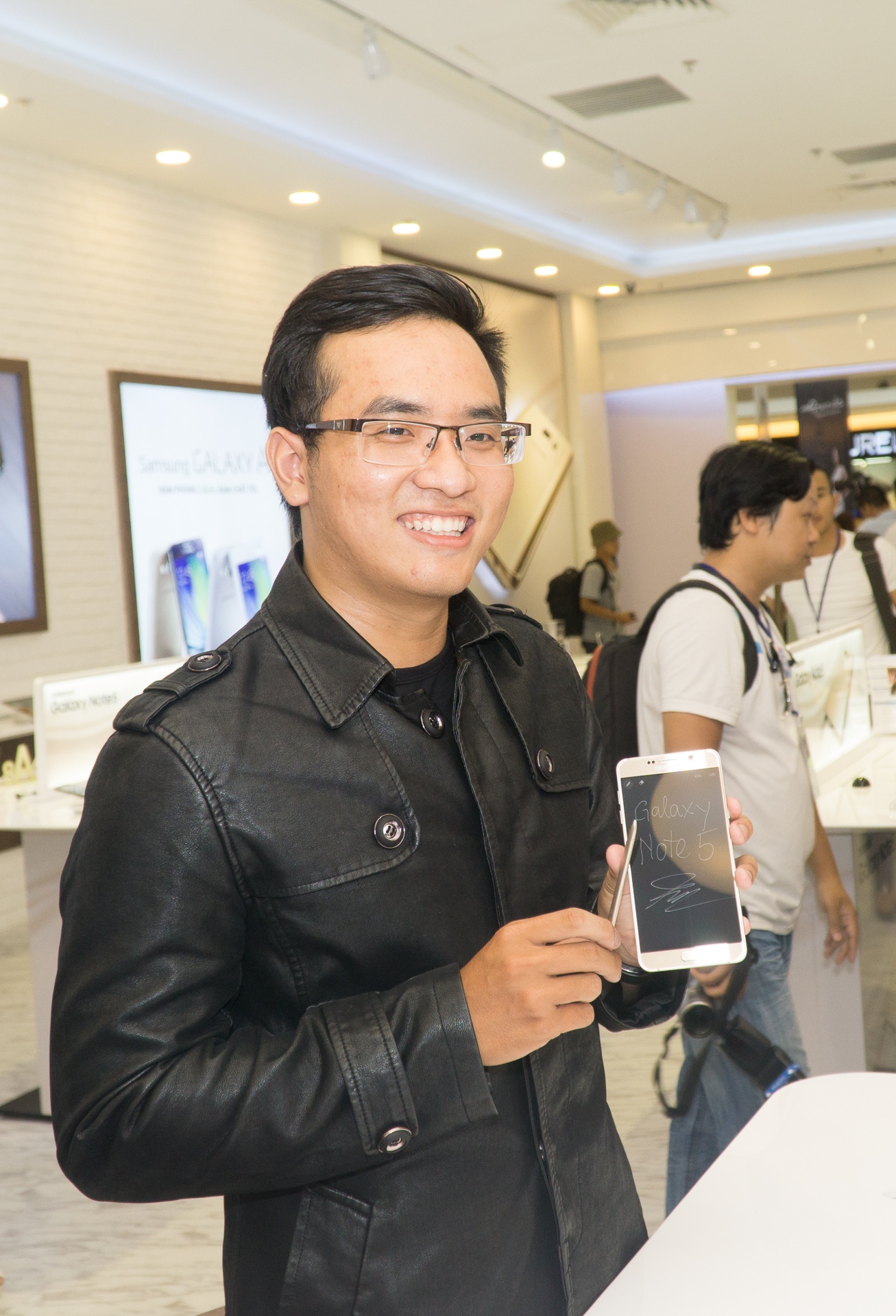 Sáng 29/8, Samsung chính thức mở bán Galaxy Note 5 tại Việt Nam. Trần Thiện Sang, ngụ huyện Bình Chánh, TP HCM, là người đầu tiên có mặt tại một showroom ở quận 7. Sang cho biết, anh đã đến từ 11h trưa 28/8 (23 tiếng trước giờ bán) để lấy được số thứ tự 001.