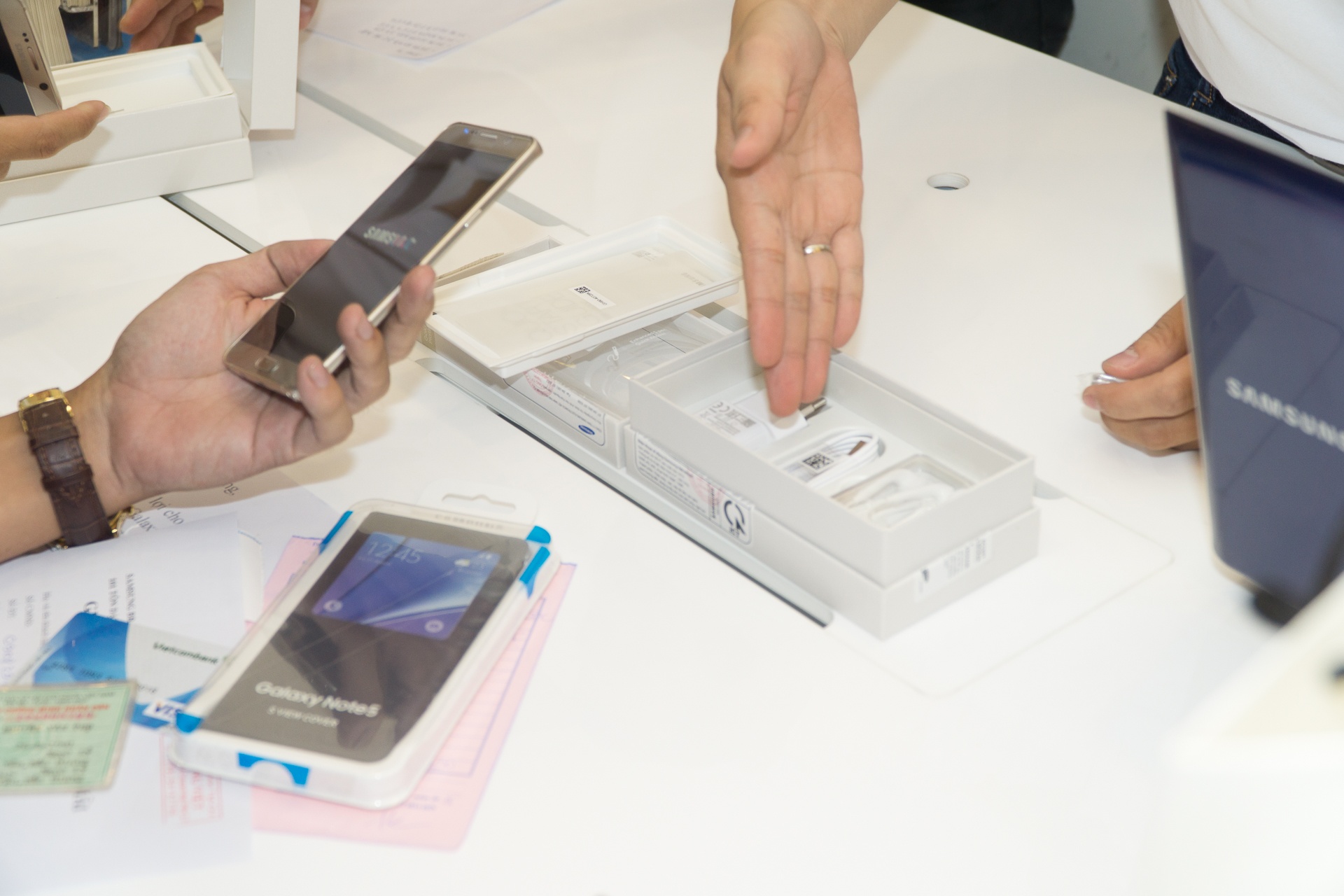 Ngoài 200 người may mắn được mua Note 5 với giá ưu đãi tại Hà Nội và TP HCM, những khách hàng đặt trước ở các đại lý bán lẻ cũng đã được nhận máy trong sáng nay.