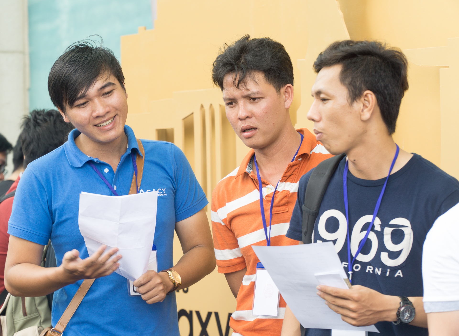 Những người có mặt sớm được phát thẻ và các mẫu đăng ký mua máy.