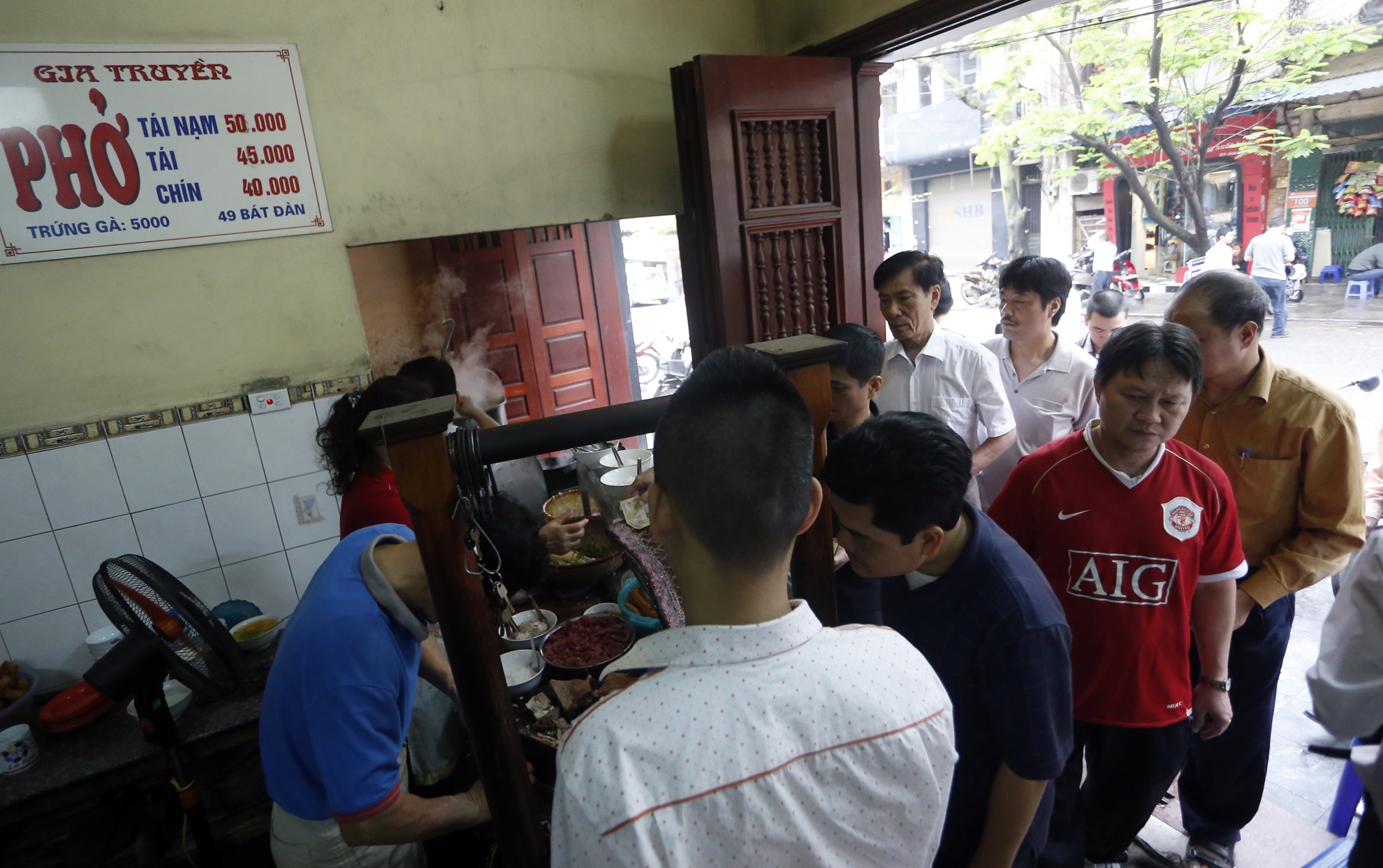 Hàng phở trên phố Bát Đàn (Hà Nội) nhiều năm qua luôn trong cảnh khách phải xếp hàng mỗi buổi sáng. Vào dịp lễ hoặc thứ bảy, chủ nhật, cảnh tượng này càng dễ xảy ra. Có những thực khách lặn lội vài cây số từ các quận khác tìm đến, quyết tâm ăn bằng được dù có người phải đợi đến 20 phút.