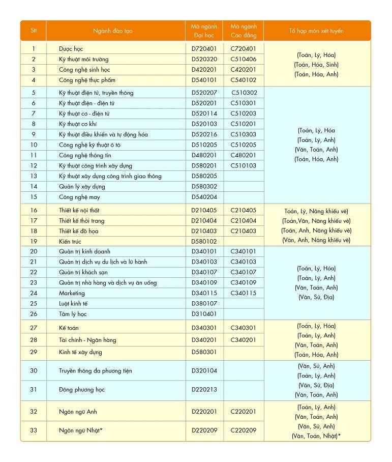 Ngành đào tạo và tổ hợp môn xét tuyển. |