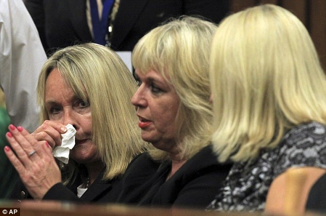 | Bà June Steenkamp (bên trái) - mẹ của nạn nhân Reeva không kìm được nước mắt. |