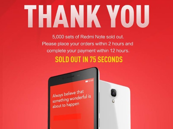 Mới đây, tại thị trường Singapore, 5.000 chiếc Redmi Note đã được bán hết chỉ trong vòng 75 giây. Đây thật sự là con số ấn tượng trong ngày bán hàng đầu tiên mà bất kì nhà sản xuất nào cũng muốn có được. Dù rằng 5.000 thiết bị nói trên chỉ tương đương 0,1% dân số Singapore.
