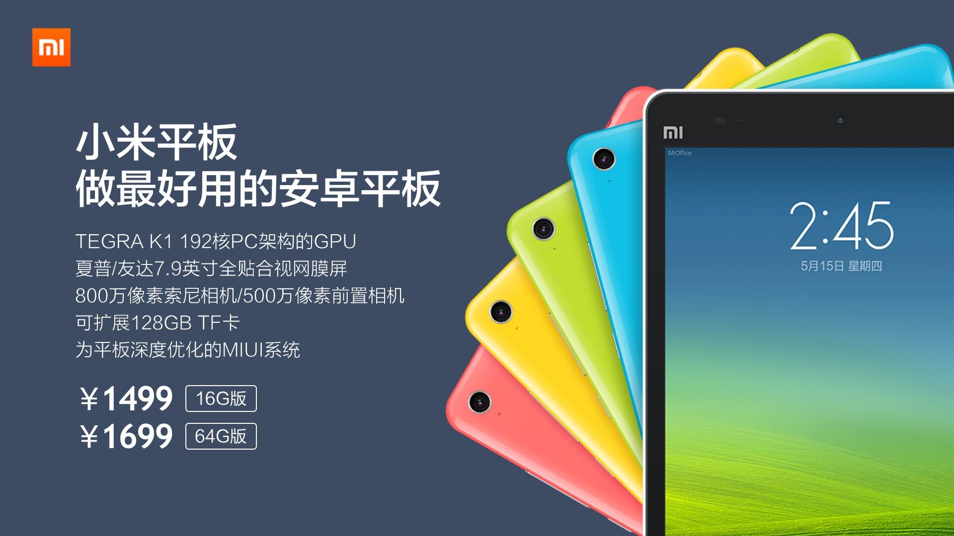 Tin đồn về chiếc máy tính bảng đầu tiên mang thương hiệu Xiaomi đã râm ran trong thời gian gần đây. Người dùng yêu thích thiết bị di động giá rẻ sẽ không phải chờ đợi thêm nữa. Tại sự kiện vừa diễn ra tại Bắc Kinh, CEO Lei Jun đã công bố MiPad - chiếc máy tính bảng Android có cấu hình mạnh mẽ và vẻ ngoài giống hệt iPad mini.