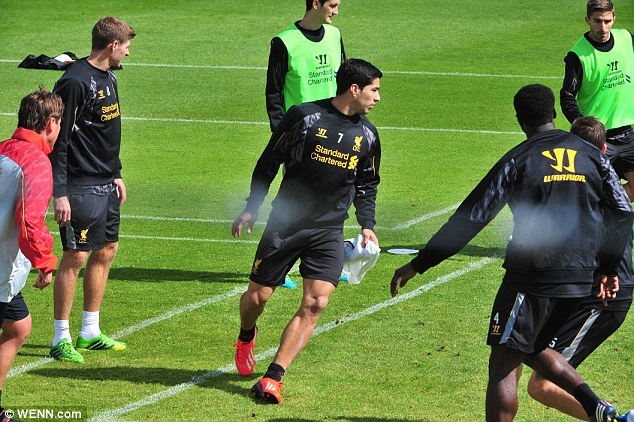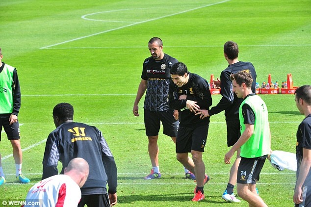 | Suarez chăm chỉ cùng các đồng đội tập luyện. |