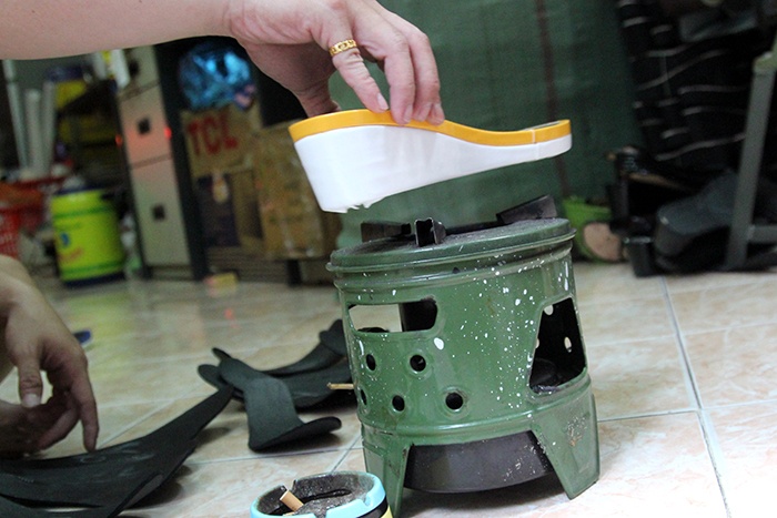 Bếp dầu là một trong những dụng cụ cần thiết sử dụng trong sản xuất giày thủ công.