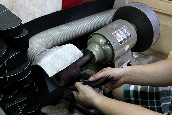 | Hầu hết các công đoạn sản xuất đều thực hiện thủ công. Một người học việc phải mất 3 - 5 năm mới trở thành thợ giày lành nghề. |