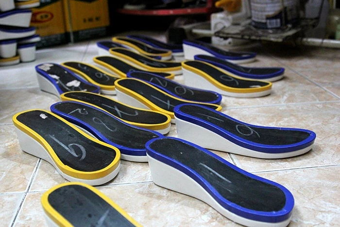 Len lỏi trong các con hẻm nhỏ cũng còn nhiều cơ sở sản xuất giày theo quy mô hộ gia đình, nhưng ở đây phần lớn được gia công theo đặt hàng của các cửa tiệm lớn tại TP.HCM.