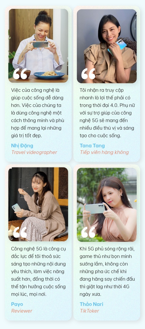 Có thể thấy trong hành trình khám phá và khẳng định bản thân của giới trẻ, smartphone 5G trở thành chìa khoá mở cánh cửa giải trí kiểu mới, nơi họ có thể trải nghiệm mọi thứ mượt mà, khám phá những cơ hội mới, trở thành người đón đầu xu hướng của thế giới, thoả sức sáng tạo và chia sẻ sản phẩm sáng tạo của bản thân bất kỳ lúc nào.