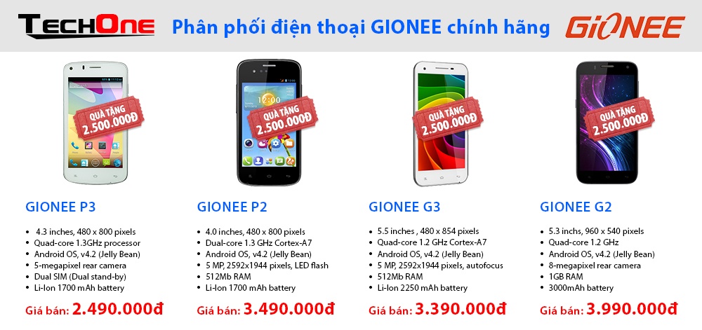| TechOne là đại lý phân phối chính hãng Gionee. |