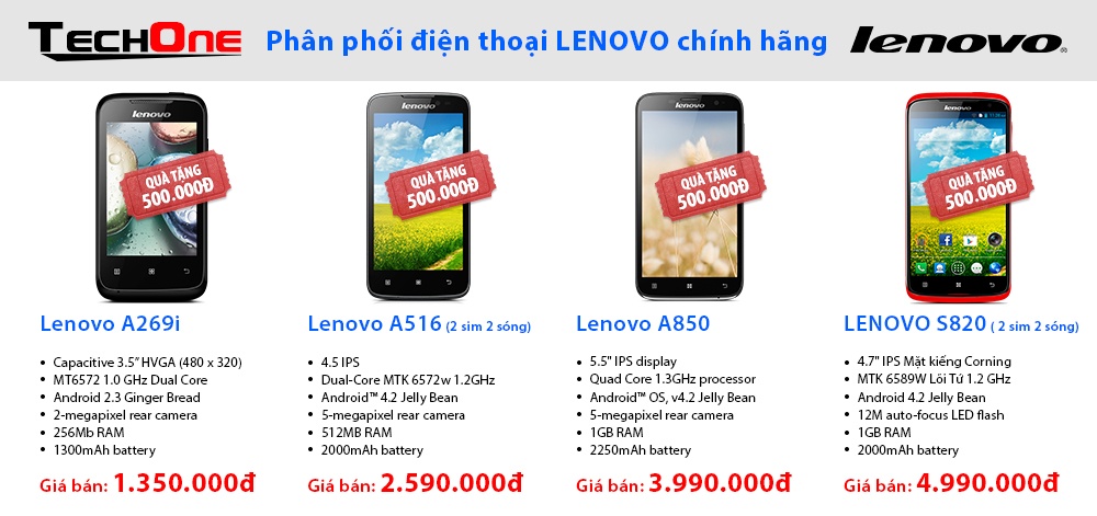 Thương hiệu Lenovo được biết đến nhiều trong lĩnh vực máy tính nhưng hiện nay Lenovo còn được biết đến rất nhiều trong lĩnh vực smartphone giá rẻ. Nhiều sản phẩm của hãng đã nổi tiếng trên thị trường điện thoại như: P780, A850, S820… và gần đây nhất là sản phẩm K900. Các sản phẩm luôn được trang bị cấu hình rất cao và pin mạnh. Hiện sản phẩm trên được phân phối chính hãng trên toàn bộ hệ thống siêu thị di động TechOne và hãng cũng là một đối tác hàng đầu của Lenovo.