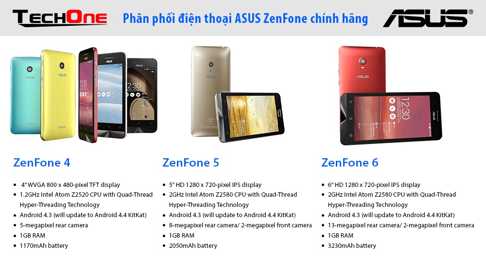 | Điện thoại Asus ZenFone sẽ có hàng tại TechOne đầu tháng 3. |