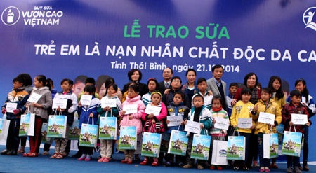 Là đơn vị tài trợ duy nhất của Quỹ sữa Vươn cao Việt Nam, Vinamilk đã trao 54.000 ly sữa với tổng trị giá khoảng 500 triệu đồng cho 600 em học sinh (chủ yếu là các em bị nhiễm chất độc da cam/dioxin) tỉnh Thái Bình.
