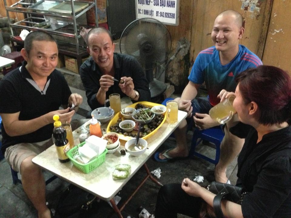 | Khi rảnh rỗi, Xuân Hinh đặc biệt thích tụ tập cùng bạn bè. Đó có thể là một bữa ốc luộc và tám chuyện ở quán vỉa hè cùng người đồng nghiệp Đức Hải. |