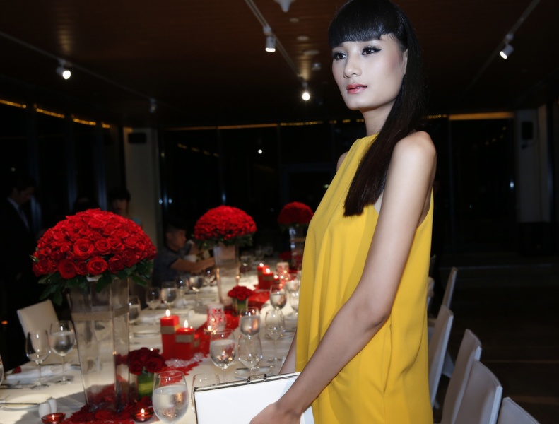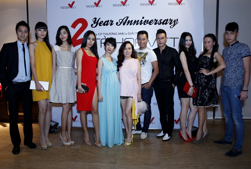 Góp mặt trong buổi tiệc là dàn chân dài đình đám của làng thời trang như Hoàng Thùy, Lê Thúy, Vũ Mạnh Hiệp, Lê Khôi Nguyên. Hoa khôi thể thao Lại Hương Thảo tranh thủ dự tiệc trước khi dành thời gian chuẩn bị tập luyện cho cuộc thi Miss World. Hot girl Thy Thơ cũng ăn diện điệu đàng khi góp mặt tại sự kiện.